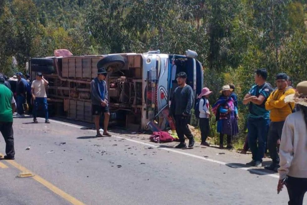 Un bus que se dirigía de Potolo a Sucre volcó por aparentes fallas mecánicas en el sector de Kuchutambo, cerca del retén.