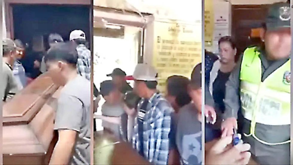 YACUIBA. Familiares intentaron este lunes ingresar el ataúd en la carceleta; la Policía lo impidió. Foto: Captura de video Un grupo de personas cargó un ataúd hasta una carceleta en el municipio tarijeño de Villa Montes para que un recluso pueda despedirse de su madre recién fallecida.