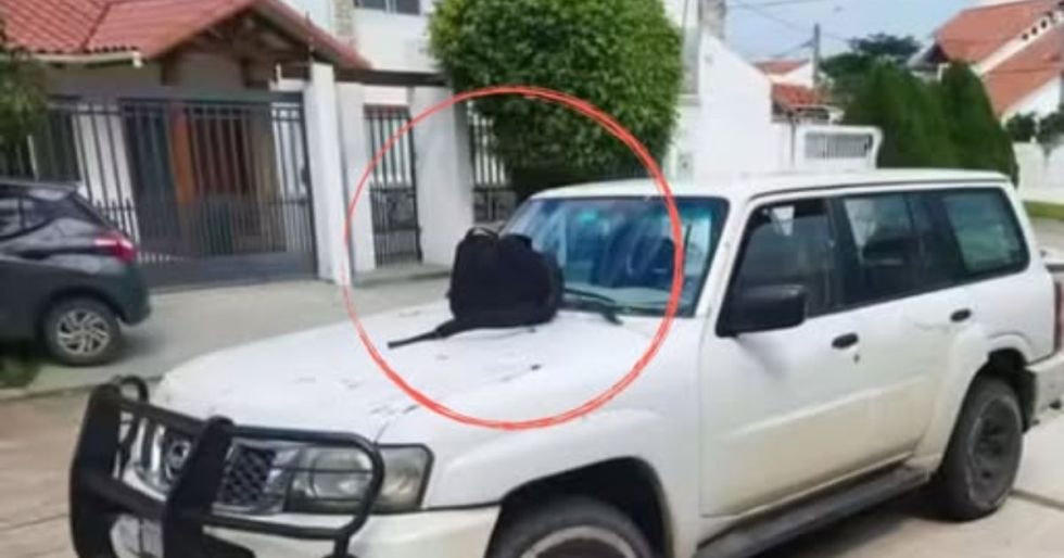 Equipos antiexplosivos y canes especializados inspeccionan una mochila hallada sobre un vehículo; reportan además una balacera en la ciudad