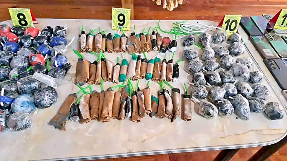 En el primer campamento se secuestraron 27 cachorros de dinamita, un arma de fuego de 9 mm más cuatro cartuchos, un revólver más un cartucho, 4 machetes, una guía detonante, un sobre de papel con hierba verduzca, 7 teléfonos celulares, 2 carnets de identidad y una billetera.