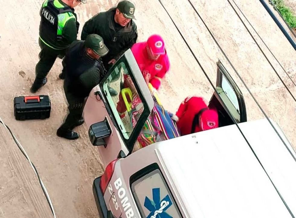 Ante la gravedad de las lesiones y considerando el estado de gestación de la mujer, efectivos de Bomberos procedieron a evacuarla de emergencia, donde recibió atención médica inicial.