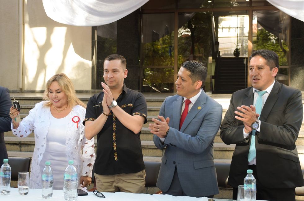 ACTO. La decana Rosmery Ruiz y a su lado el presidente del TSJ, Romer Saucedo, ayer, en Tarija. Foto: TSJ Un mes después de que el Tribunal Supremo de Justicia (TSJ) presentara en la Asamblea Legislativa Plurinacional (ALP) un paquete de proyectos de ley que apuntan a la transformación de la justicia, no hay ningún pronunciamiento del Legislativo y el presidente del máximo tribunal de justicia de la nación, Romer Saucedo, anunció que la Sala Plena evalúa acciones para asumir después de las elecciones subnacionales.