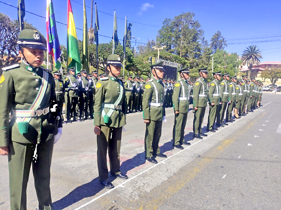 El acto central de conmemoración se desarrolló en la plazuela de la exestación Aniceto Arce, con la presencia de autoridades policiales, como el vicerrector de la Universidad Policial coronel Mauricio Laguna, padres de familia y otros invitados. El director de la Fatescipol, Chuquisaca, teniente coronel Oswaldo Fortún, informó que el acto de conmemoración se realizó en un lugar abierto para mostrar a los jóvenes bachilleres la alternativa de formarse en la carrera policial.