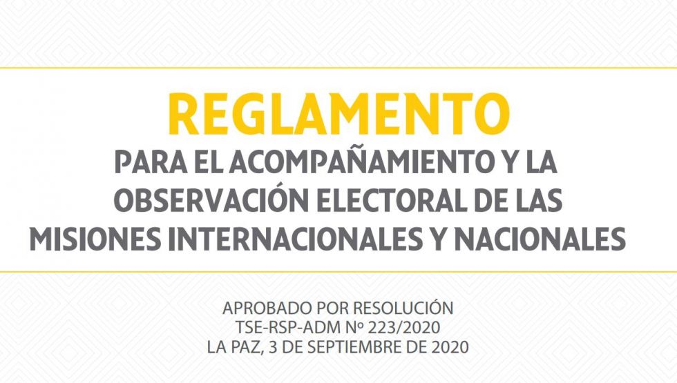 La Sala Plena del Tribunal Supremo Electoral aprobó, mediante Resolución, el Reglamento para el acompañamiento y observación electoral para las Misiones Nacionales e Internacionales que harán el seguimiento del proceso electoral.