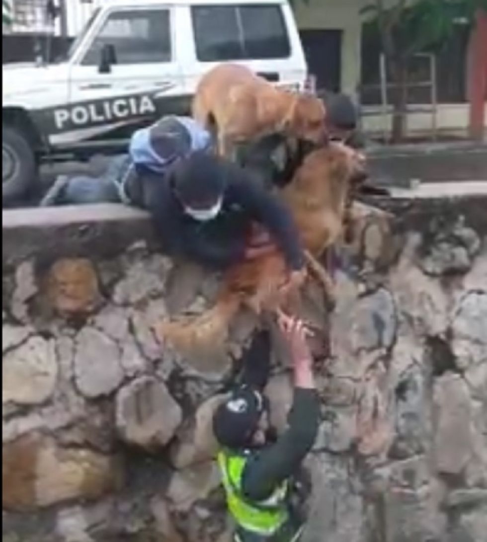 Video viral: Policías rescatan a un perro de un canal de agua en Cochabamba