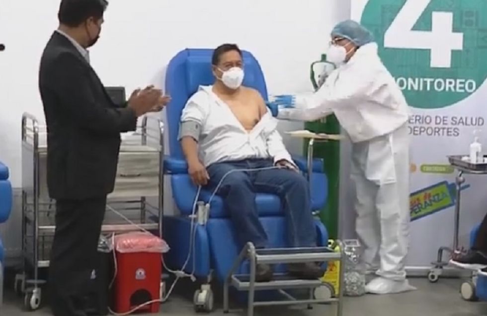 El proceso fue transmitido por los medios estatales, que reportaron que Arce recibió el primer componente de la vacuna rusa Sputnik V.