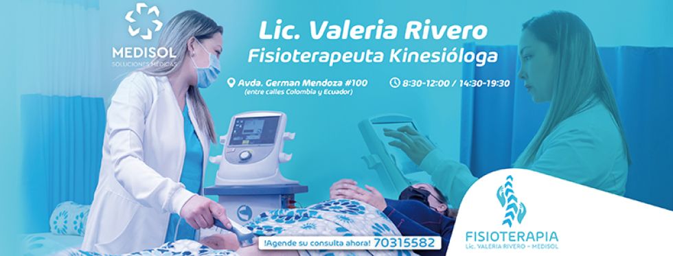 “Fisioterapia Medisol” se encuentra en la Av. Germán Mendoza, entre Colombia y Ecuador, a pocos pasos de la Facultad de Derecho, en el Centro Medisol, Nivel 1, ambiente 2. Los teléfonos de contacto son el 703-15582 o el 4-6457447.