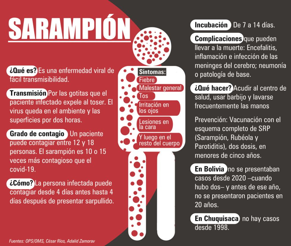 Médicos de Bolivia consideraron como “muy preocupante” la confirmación del primer caso de sarampión en el país luego de cuatro años y llamaron a los padres a revisar el esquema de vacunación de sus hijos, descuidado en muchos casos desde la pandemia del covid-19.