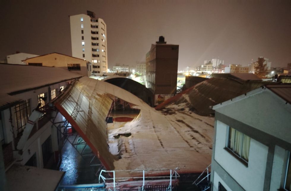 Un fuerte granizo registrado la noche del lunes dejó estragos de magnitud en la ciudad de Oruro, incluyendo la caída de dos tinglados de unidades educativas.