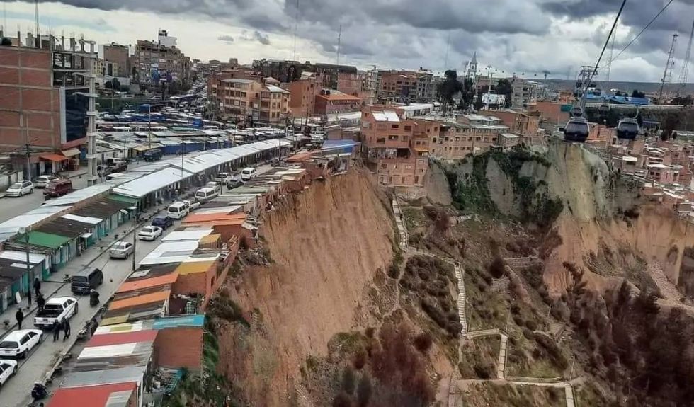 "En marzo se les notificó para que abandonen el lugar, lamentablemente hasta la fecha no lo hicieron. Se volverá a notificarlos una vez más, como corresponde y, a la tercera vez, usaremos la fuerza pública, no queda otra, para dar seguridad a todas las personas que transitan y viven en este lugar”, informó el secretario municipal de Gestión de Riesgos de El Alto, Gabriel Pary.