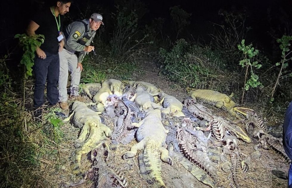 Durante la inspección, las autoridades encontraron 41 ejemplares muertos de Caimán Yacaré (lagarto) a orillas de una laguna, sin piel y en avanzado estado de descomposición.