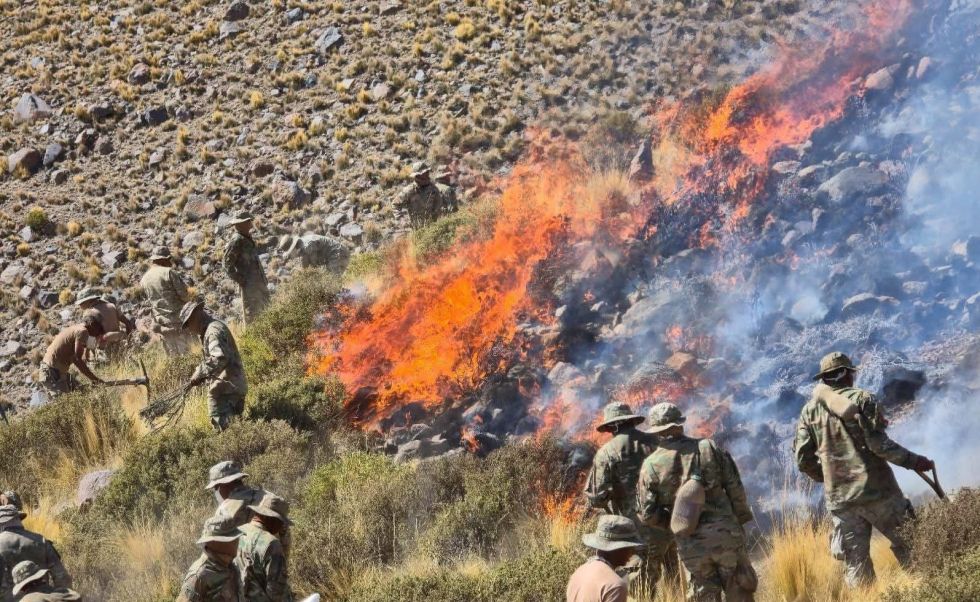 Militares del Regimiento de Infantería 4 “Loa” de Uyuni lograron sofocar el incendio de magnitud en el Cerro Tunupa, en el municipio de Tahua, Potosí, que dejó 125 familias afectadas y miles de hectáreas de pastizales arrasadas por el fuego.