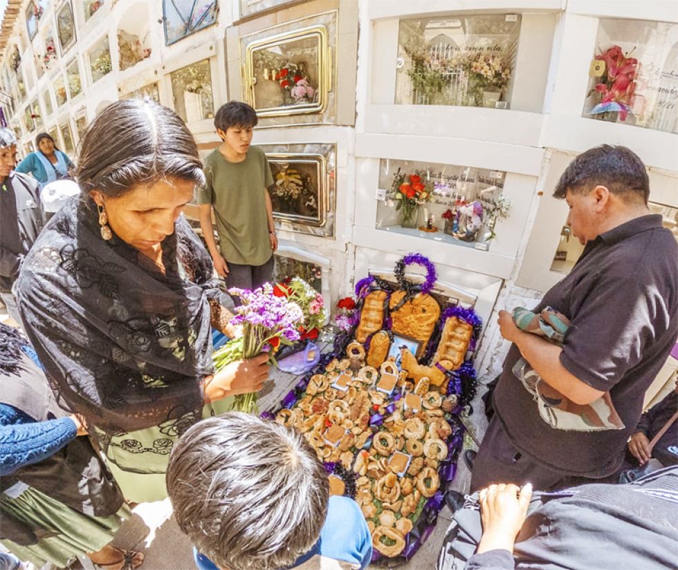 Fieles a sus tradiciones, los bolivianos recordaron este sábado a sus difuntos con las tradicionales mesas o altares repletos de panes, dulces, bebidas y comidas, instalados en casas y espacios públicos. En Sucre, la población acudió masivamente al Cementerio General para recibir a sus seres queridos, como dicta la costumbre de Todos los Santos.