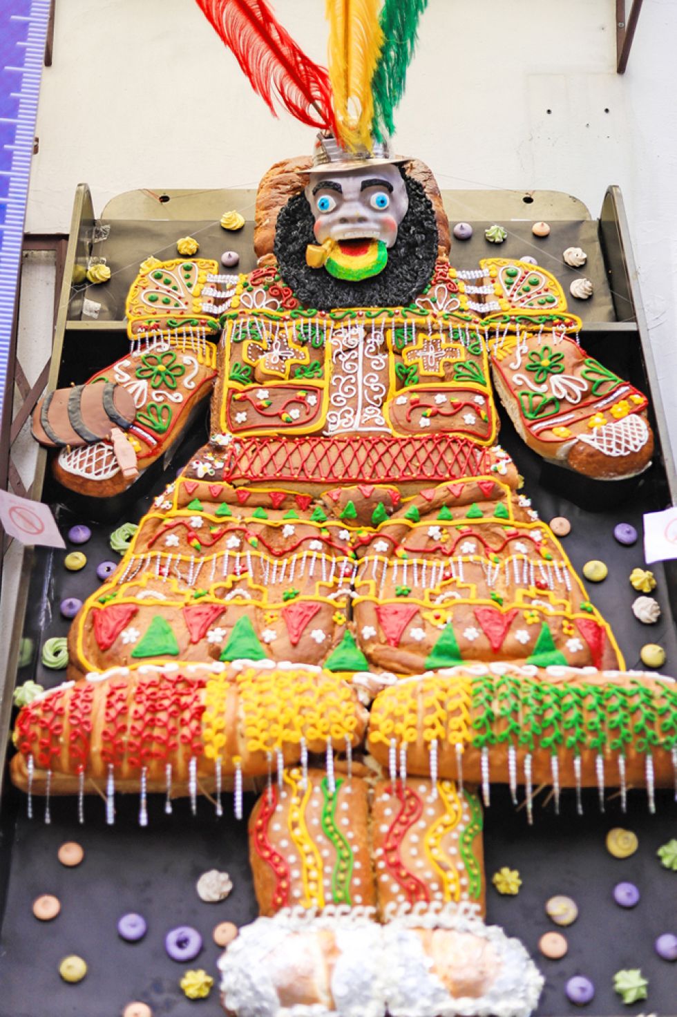 La ‘t'antawawa’, que llevaba decoraciones de color rojo, amarillo y verde como la bandera boliviana, se lució en las puertas de la pastelería y los transeúntes pudieron sacarse fotografías junto a ella. Tras algunas horas de exposición, los pasteleros repartieron el pan entre la gente que se acercó al lugar. EFE
