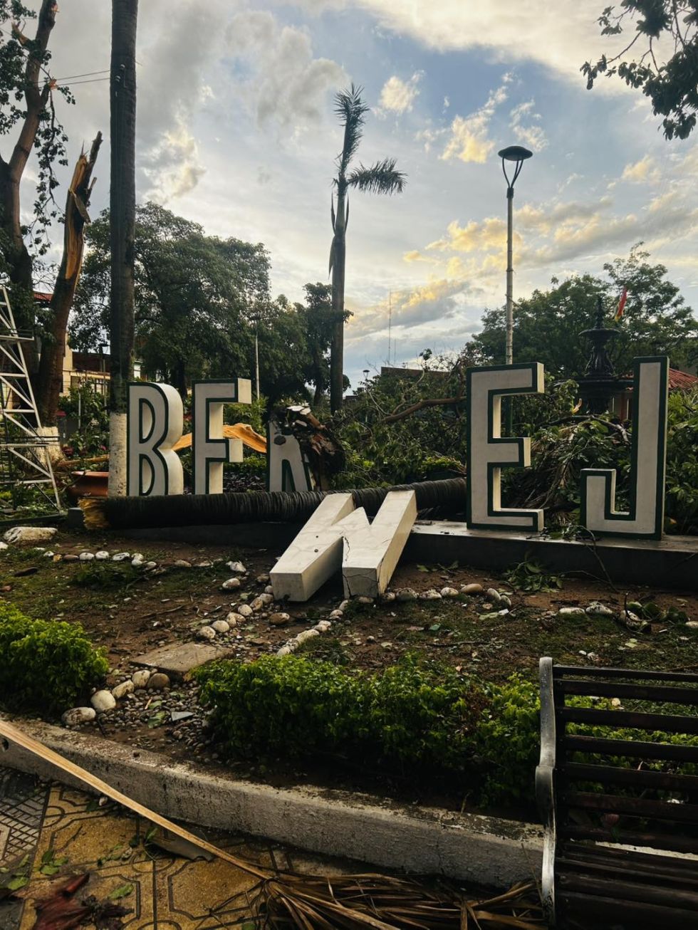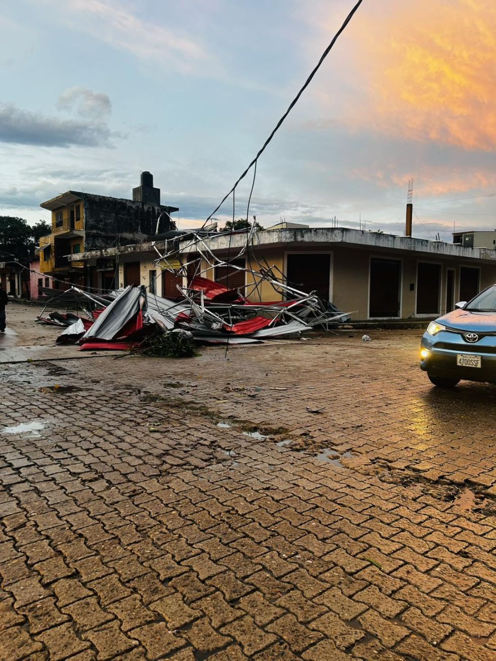 Imágenes que circulan en redes sociales muestran la magnitud de las afectaciones provocadas por las ráfagas de vientos y lluvia. Se observan árboles, letreros y techos caídos y vehículos aplastados en la frontera con Argentina.