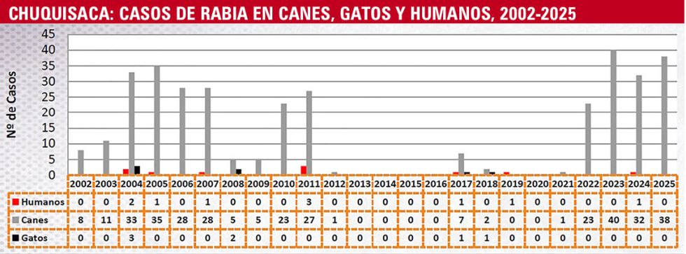 El responsable del Centro de Enfermedades Zoonóticas del Sedes, Alfredo Carvajal, dijo que en los últimos dos años Sucre fue el municipio con más casos de rabia canina a nivel nacional, superando incluso a Cochabamba, La Paz, Santa Cruz y El Alto, que históricamente lideraban las estadísticas de esta enfermedad.