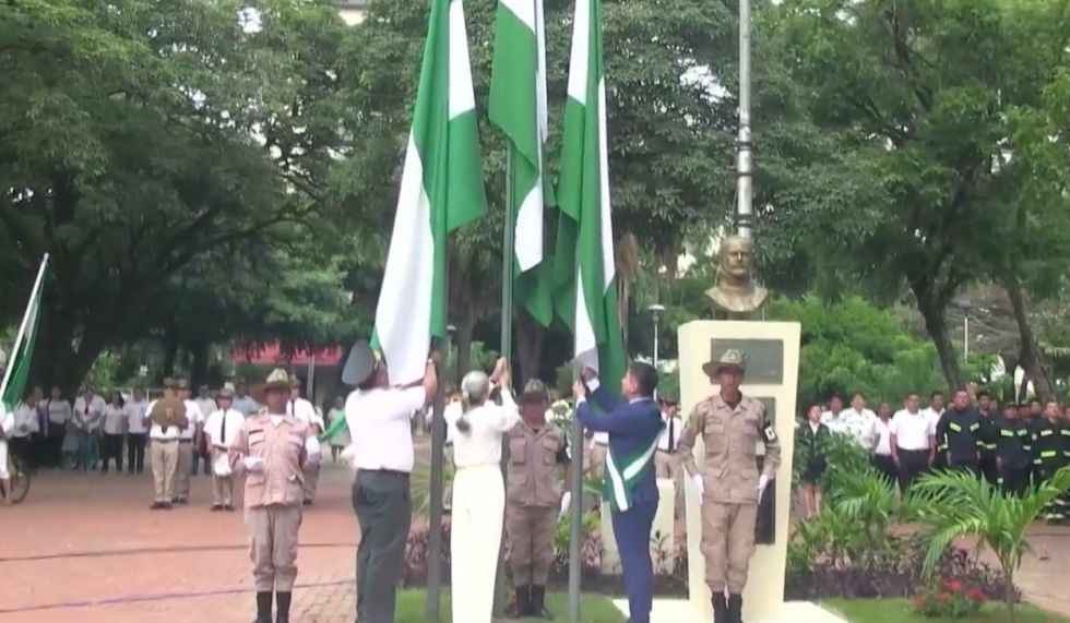 La Alcaldía abrió la agenda festiva con la iza de banderas y entrega de ofrendas florales, sin su máxima autoridad Jhonny Fernández